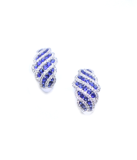 Blue Topaz, Amethyst, Garnet, Blue Sapphire and Diamond Earrings