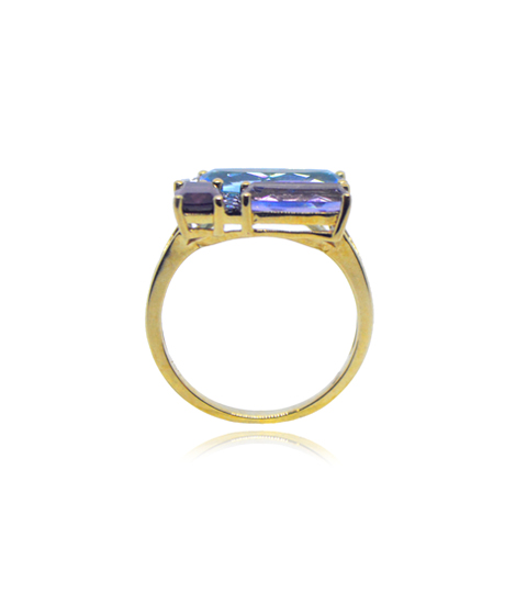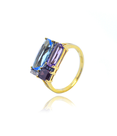 Blue Topaz, Amethyst, Blue Sapphire and Diamond Ring