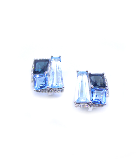 Topaz, Amethyst, Blue Sapphire and Diamond Earrings